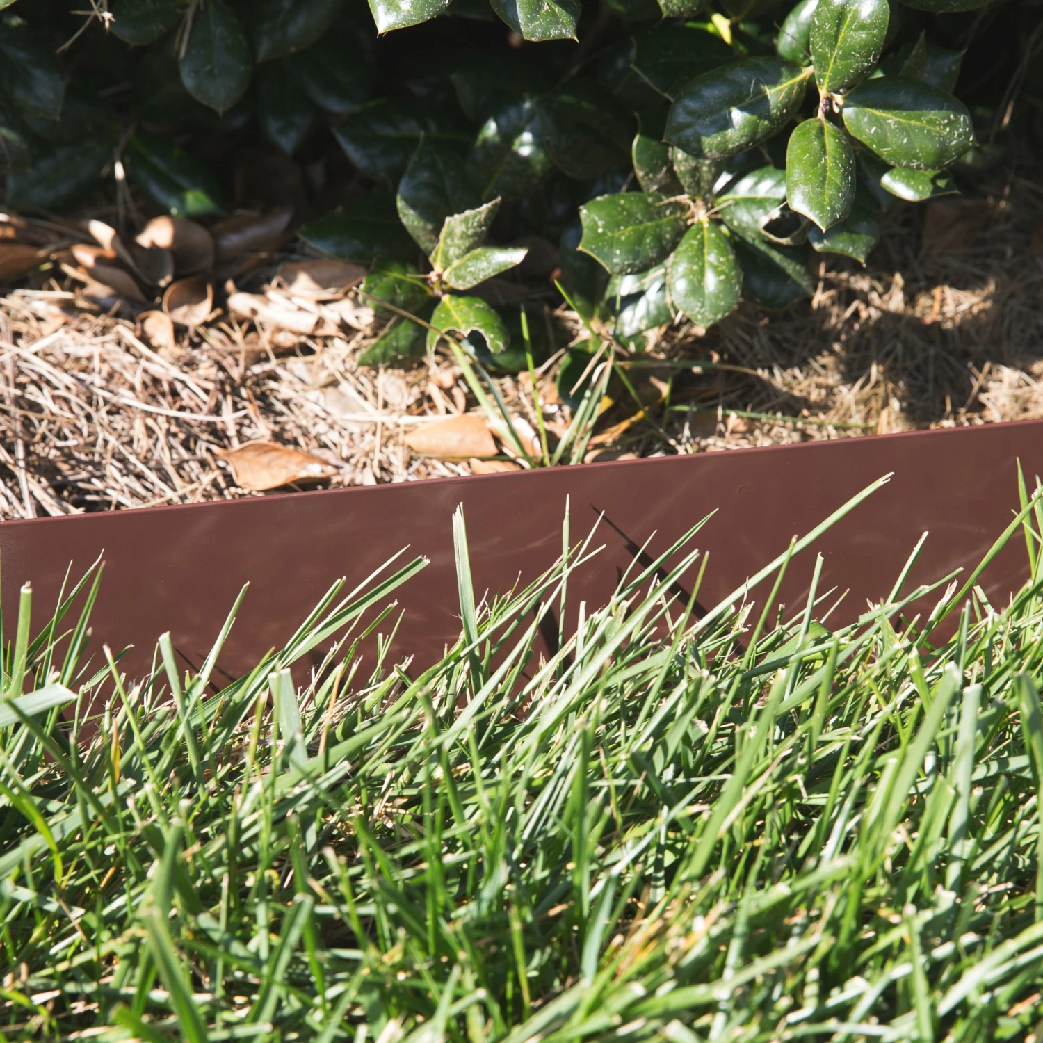 Col-met 4 ft. steel edging sections are great for small projects. The edging’s length makes it easy to transport without a truck or trailer. The brown powder-coated steel edging comes with four stakes to join sections together and to anchor edging into the ground.
