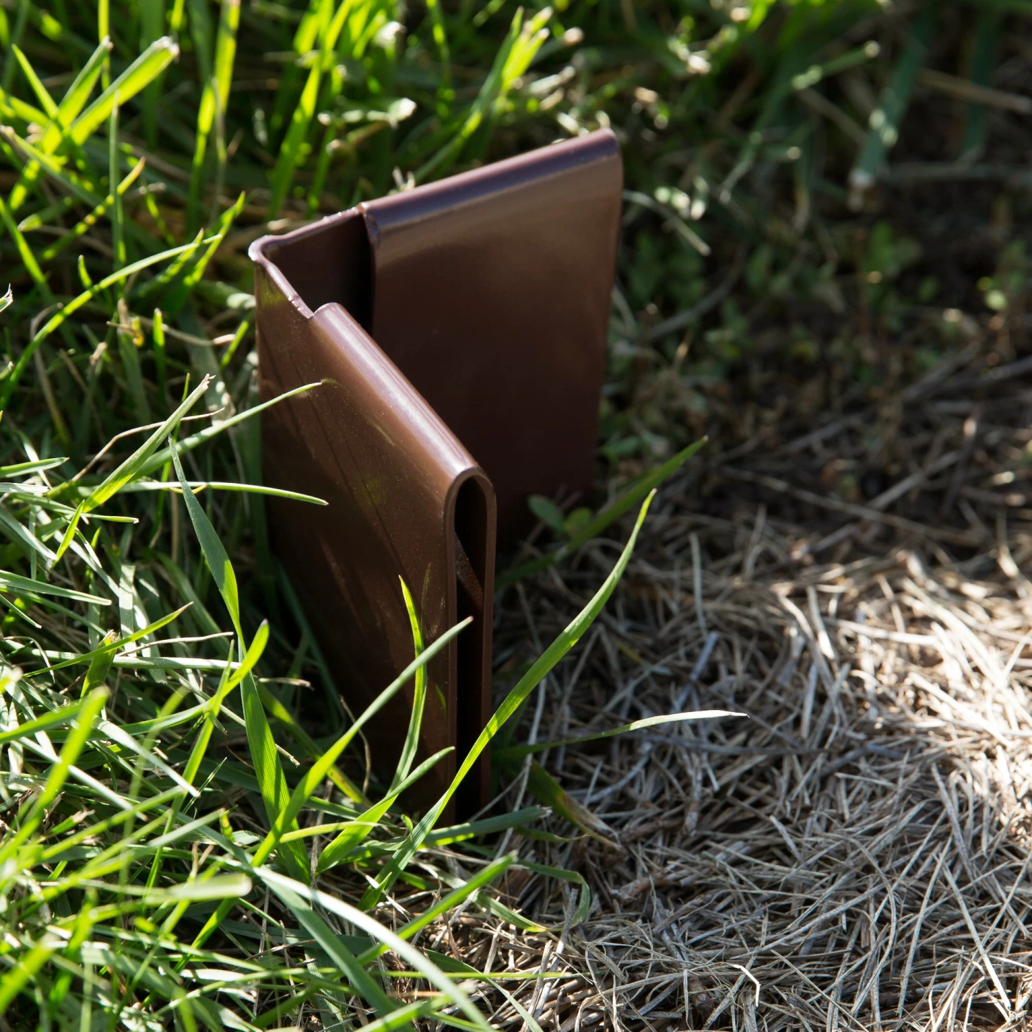 This Colmet steel edging corner stake is pre-formed to a 90Ð angle. The brown, powder-coated steel corner stake will give your edging job a professional appearance. Simply cut the edging (sold separately) to the desired length and insert the ends into the corner stake before driving the stake into the ground.