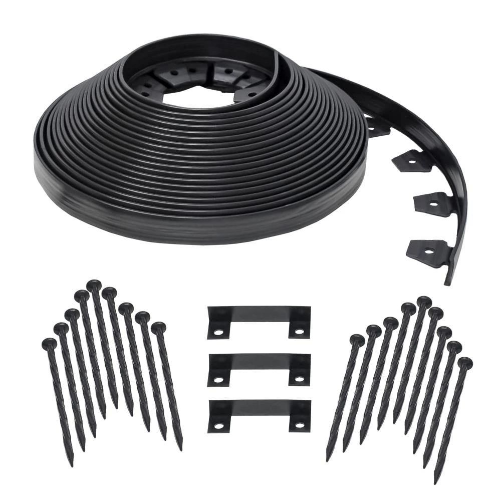 - Kit contains (1) 60 ft. coil of landscape edging, (18) anchoring spikes, and (3) connectors