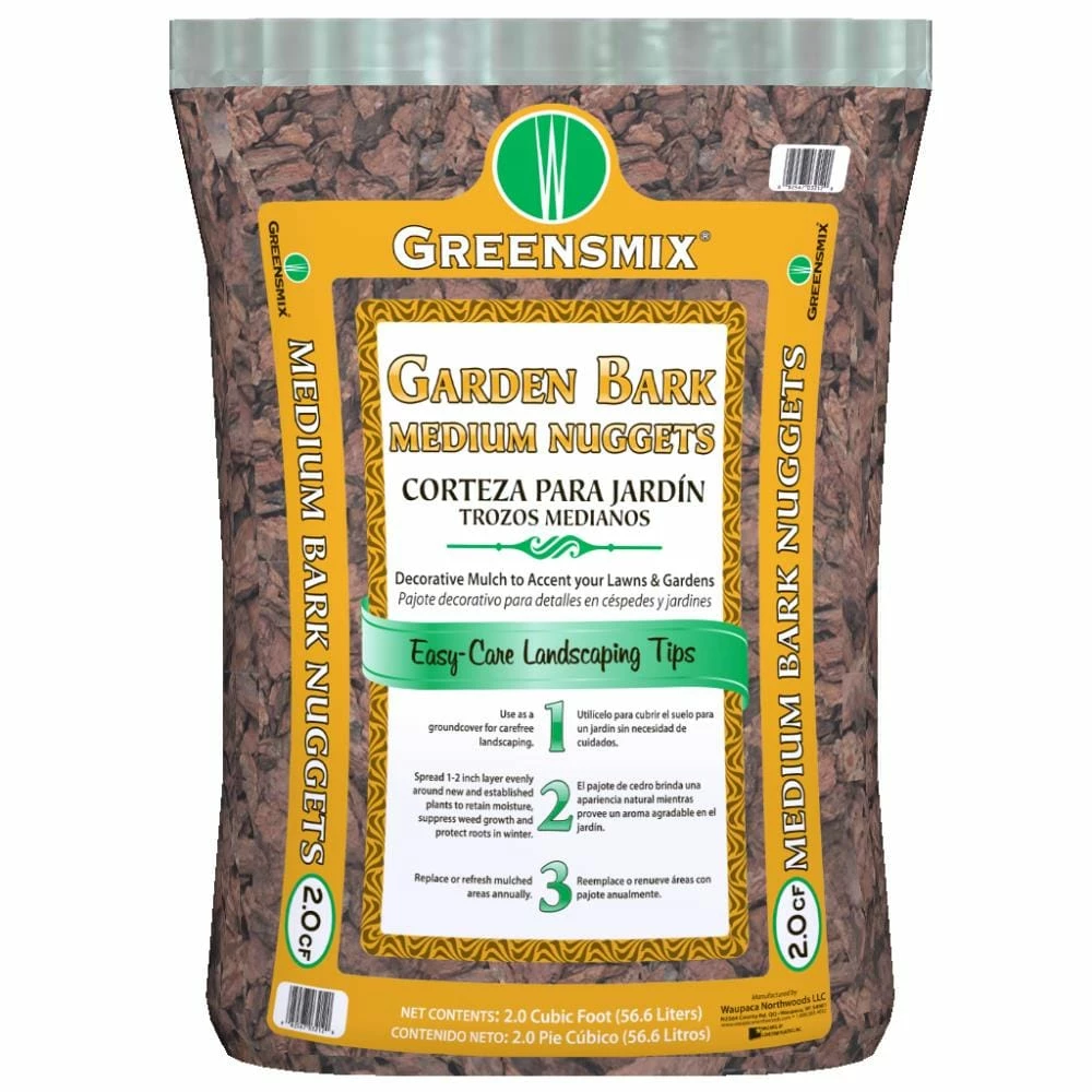 - Hardwood bark mulch helps retain soil moisture and suppresses weed growth, keeping plants healthy