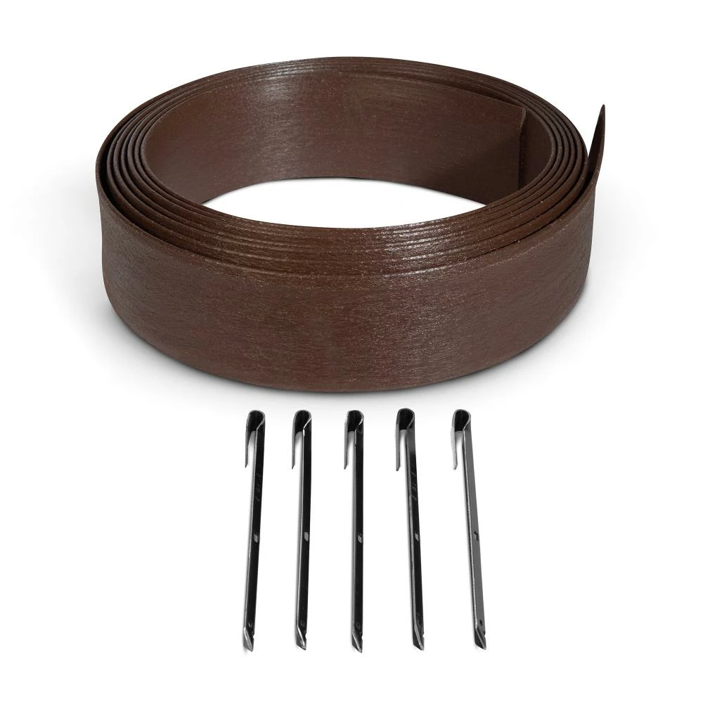 Anyone can have a professional looking garden by using the dig-in flex scape™ edging by Suncast®. Made from 85% recycled materials, the durable flex scape™ design of this product will bend easily around the curves of your garden. Five included hook-stakes allow for easy installation, using minimal tools. The natural wood grain texture of this edging blends well and complements any landscape.